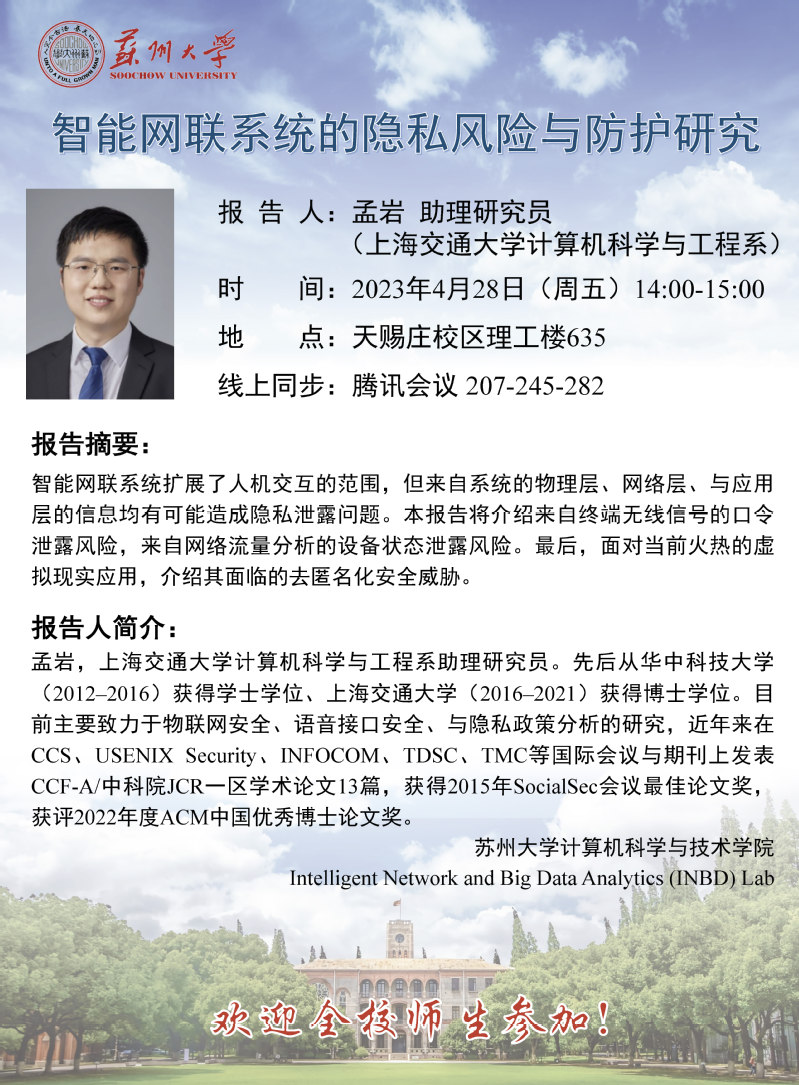 学术报告:智能网联系统的隐私风险与防护研究