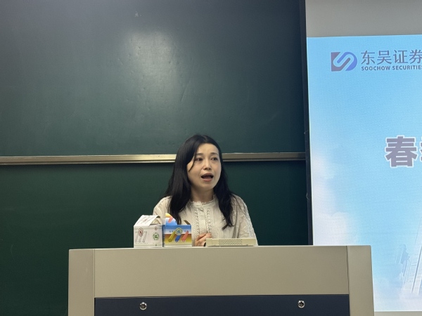活动伊始,东吴证券人力资源部负责人余晓虹系统阐述了公司的发展战略与人才培育体系。东吴证券始终以技术创新为驱动力,从苏州本土券商发展成为全国性综合金融服务商。在人才发展方面,公司构建了“专业+管理”双轨制晋升通道,配套定制化轮岗机制、行业资格认证支持等制度,帮助人才成长。