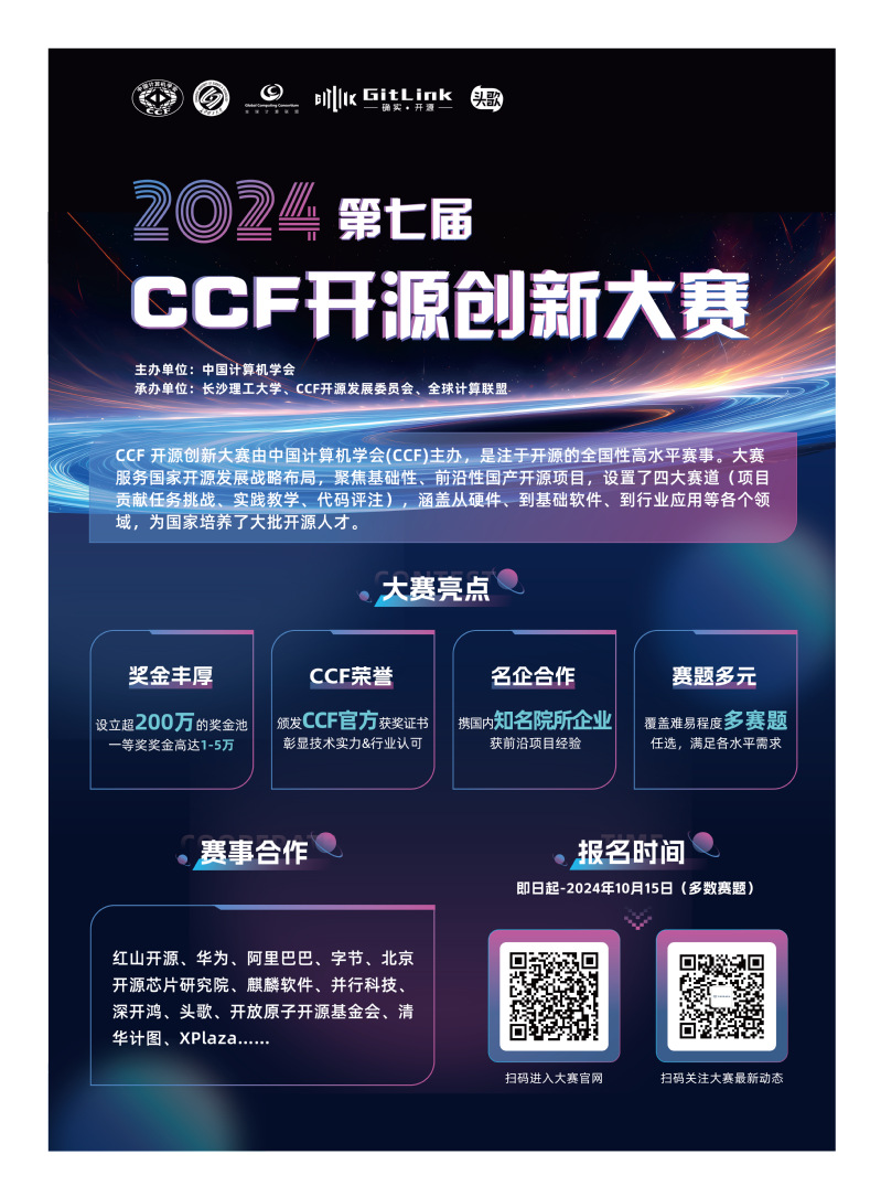 2024第七届CCF开源创新大赛启动|欢迎同学们踊跃参加!