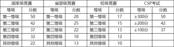 4、其他国家级团队赛仅限前4名,省部级团队赛仅限前3,校级竞赛仅限前2名。计分原则:按照对应竞赛等级的满分核定。