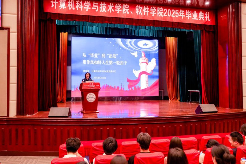 党课现场氛围热烈,掌声如潮。在毕业寄语环节,陈国凤殷切期望每一位毕业生党员能够将校训中的“正气” 与 “完人” 理念,以及八项规定所强调的 “务实” 与 “清廉” 要求,内化为自身人生的 “源代码”,在未来的工作中,需以严谨态度写好每一行代码,秉持敬业精神做好每一项服务,充分彰显党的形象与风貌。
