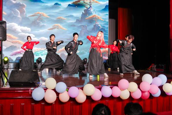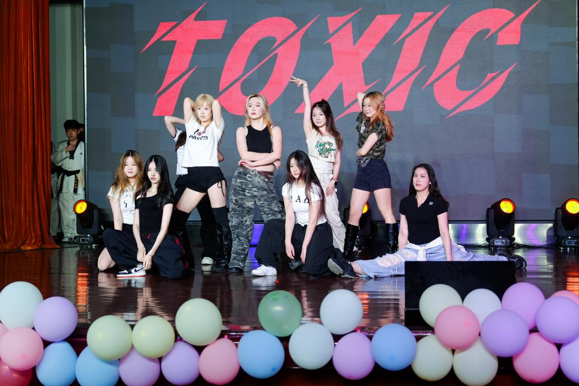 舞蹈表演方面,陈一天等同学带来的《Whiplash》《Sushi》《Hands Up》三支舞蹈串烧以动感的节奏点燃全场。随后,朱欣婷、石煜两位同学带来精彩双人舞,她们默契的配合与充满张力的表演,将青春的活力展现得淋漓尽致,赢得现场阵阵欢呼。
