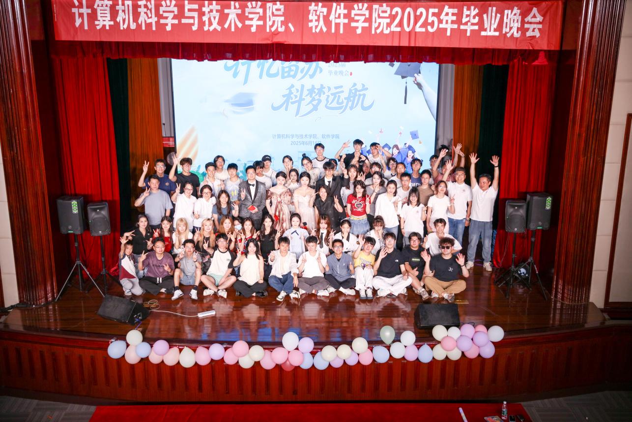 落幕时分,全体师生与工作人员合影留念。 舞台灯光渐暗,但"计忆流苏"的故事永不散场。正如晚会主题所言,愿全体毕业生怀揣代码与梦想,在远航的征途中,劈波斩浪,一帆风顺。