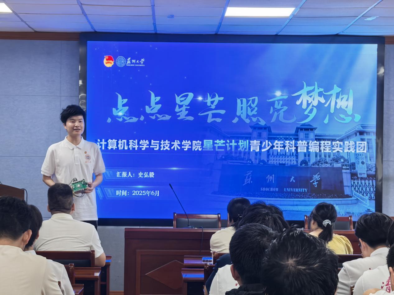 随后23级本科生朱金涛也代表本次全体实践队员表态:将以昂扬的斗志、严谨的态度迎接挑战,在实践中传承苏大学子的使命担当,践行“请党放心、强国有我”的青春誓言,用脚步丈量祖国大地,用行动书写青春华章。