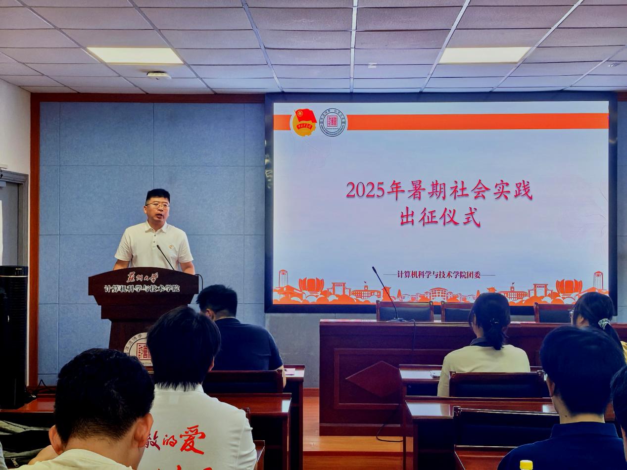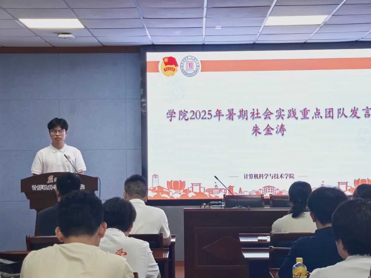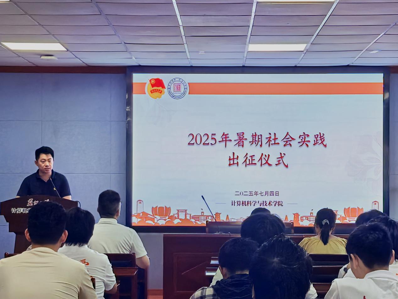 仪式伊始,邝泉声老师为全体成员详细介绍了学院2025年暑期社会实践总体方案。他强调,本次实践将坚持“党建引领、服务大局、知行合一”的原则,围绕国家发展战略和社会民生热点,组织多个方向的实践项目,涵盖红色寻访、科技普及、乡村振兴、智慧校园建设等多个维度,鼓励同学们在社会课堂中锤炼本领、增长才干。