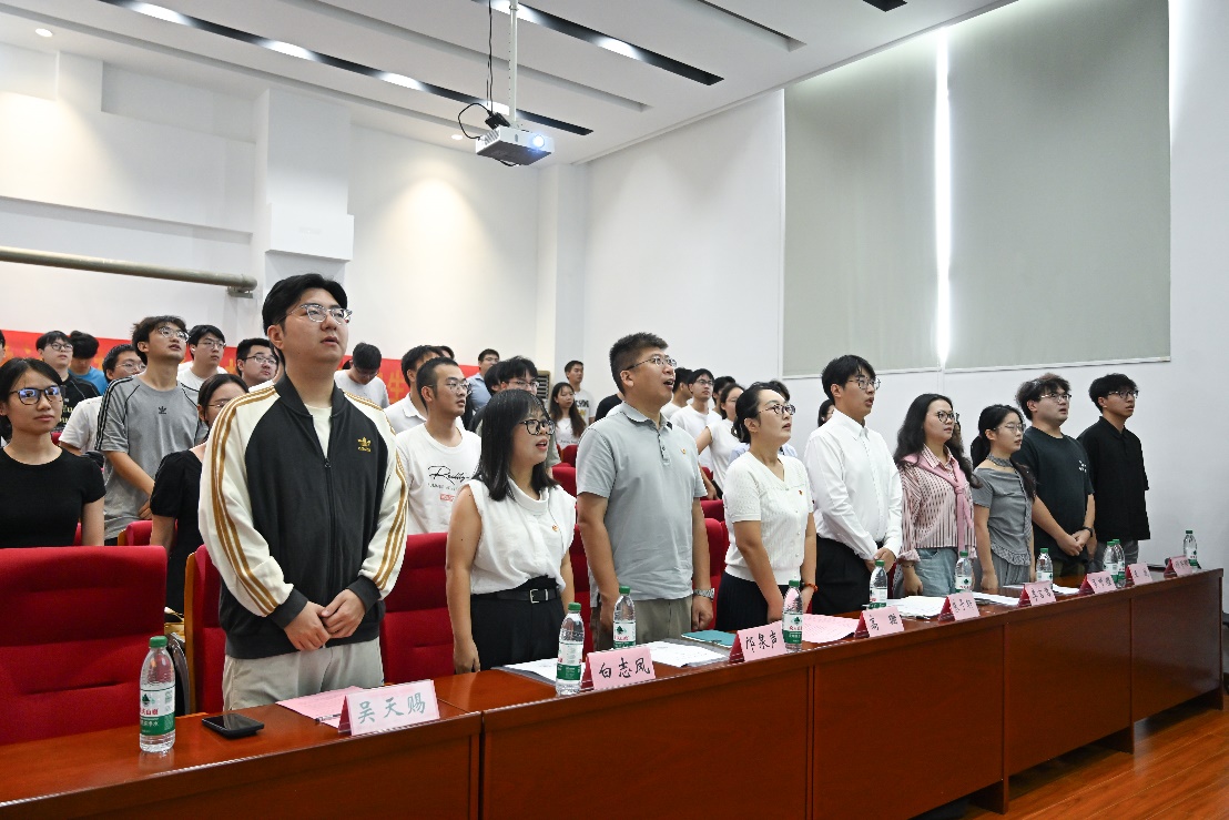 会议正式开始前,全体代表起立奏唱中华人民共和国国歌,庄重的旋律凝聚起在场师生的共识与力量。国歌演奏完毕,罗垲毅同学致开幕词,宣布Beat365唯一官方网站第二十二次研究生代表大会正式开幕。