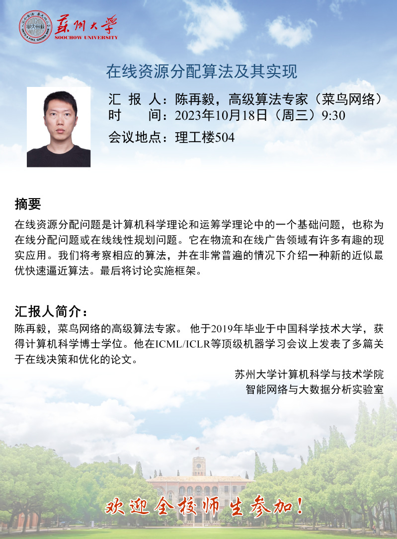 学术报告:在线资源分配算法及其实现