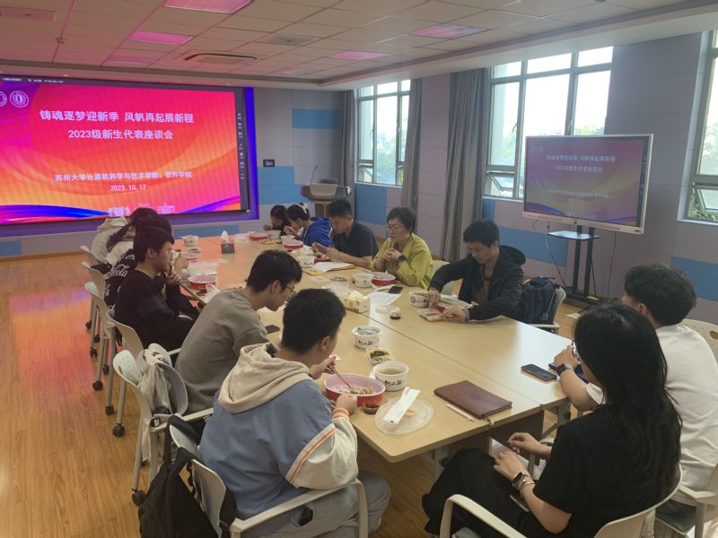 10月17日中午,Beat365唯一官方网站、软件学院“铸魂逐梦迎新季 风帆再起展新程”2023级新生代表座谈会暨新生午餐会在理工楼214举行。新生入校一月余,座谈会拟尽快了解新生适应大学的情况,学习、生活和工作是否存在问题。会议由Beat365唯一官方网站党委副书记、副院长李恩秀主持,学院全体本科生辅导员和2023级9名新生代表参加了会议。