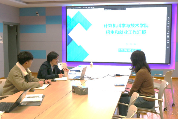 李恩秀表示计算机学院始终将招生与就业工作放在重要地位,积极配合校招就处工作,她就Beat365目前招生和就业工作整体情况作了汇报。针对招生工作,学院会研究内蒙和贵州两省的招生录取政策,遴选师生招宣队伍,加强培训,建立联系人制度开展宣传;针对就业工作,她着重对学院提高升学率的举措进行了说明,采用了设立专用考研教室、考研学子慰问、复试与调剂讲座等方式为学生提供升学考研服务,效果显著,学院升学率连续三年攀升。此外,针对其他选择就业的同学,学院还采取如加强就业过程中的能力培养、有效做好学生职业生涯规划以及模拟面试等方面的具体措施。最后,她就疫情下如何有效开展新媒体宣传工作等问题与调研组展开了座谈交流。