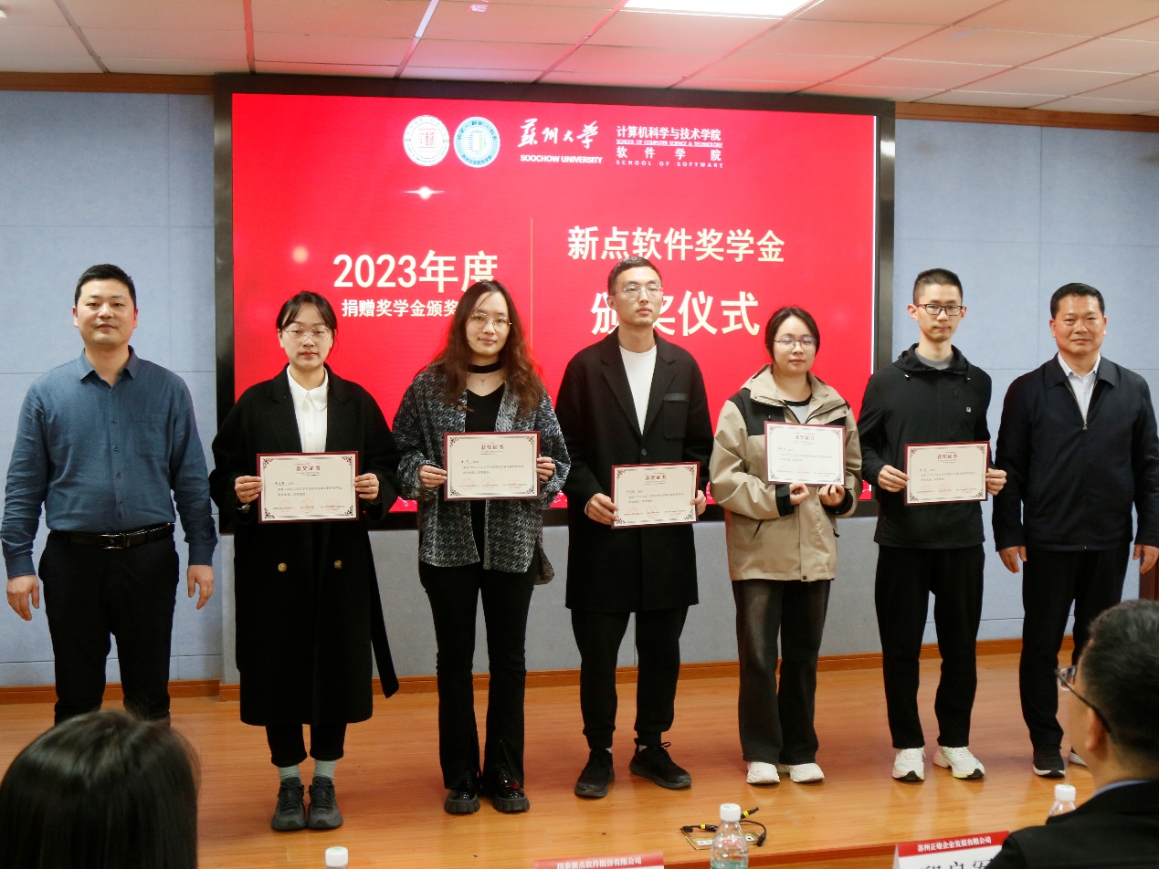 3月29日下午,Beat365唯一官方网站、软件学院2023年度捐赠奖学金颁奖仪式在Beat365唯一官方网站天赐庄校区本部理工楼504会议室举行。Beat365唯一官方网站党委书记胡新华、软件学院副院长俞莉莹、苏州正雄企业发展有限公司助理总经理兼CIO邱良军、国泰新点软件股份有限公司人力资源经理肖益锋、苏州沃柯雷克智能系统有限公司总经理张子洋、南德认证检测(中国)有限公司上海分公司人力资源经理王珏等参加活动。仪式由学院党委副书记兼副院长李恩秀主持。