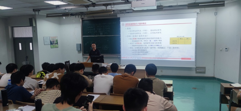首先,软件学院常务副院长、计算机学院副院长赵雷以《关于推免和考研的若干问题》为题,为21级同学解答了若干疑问。赵雷首先从研究生培养的基础问题入手,清晰阐述了研究生学硕与专硕类别的特点、学位点与专业设置的基本信息,同时介绍推免和统考的详细流程及关键节点,为学生规划升学提供了宝贵的信息。随后,他带领大家深入了解本学院的研究生培养情况,介绍学院学位点设置和六个研究中心,详细说明招生过程与统考科目。最后,赵雷院长通过具体数据,展示学院学科发展与ESI排名、本院考生录取率等学院研究生教育基本情况。学生们积极参与互动,赵院长耐心细致地解答了每一个问题,并给予学生们具体的建议和指导。