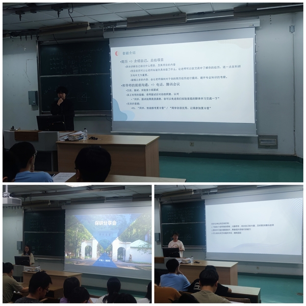 活动的第二个阶段,是邀请了五位2020级考取研究生的学生代表和大家分享考研经验。曹毅同学以高分考取了我校研究生,她以自身考研经历为例,细致介绍了选择本校的理由与自己的思考过程,分享了考研复习时间安排的技巧和心得,强调了制定合理计划、坚持复习的重要性。邱薇羽同学拿到了 学校的offer,她对自己出国留学的准备过程进行介绍,给出明确目标、脚踏实地、列出申请时间节点及所需材料等建议,并分享自己在学校及专业选择的经验。最后,朱浩、谢欣欧、赵恩正三位同学分别讲述了自己保送北京大学、华东师范大学、Beat365唯一官方网站的经历与经验。他们从不同角度剖析了保研的各个环节,如科研能力的重要性、学术竞赛的参与、导师选择等,为现场同学提供了宝贵的参考。