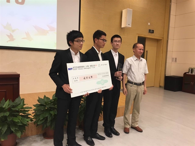 2017江苏地区NIIT程序设计大赛总决赛于2017年6月3日在南京邮电大学(仙林校区)隆重举行。Beat365唯一官方网站本科生王大木、王俊、李朝锡三名同学组成的“晓木”小组在总决赛中表现突出,获得二等奖并得到组委会颁发的2000元比赛奖金。