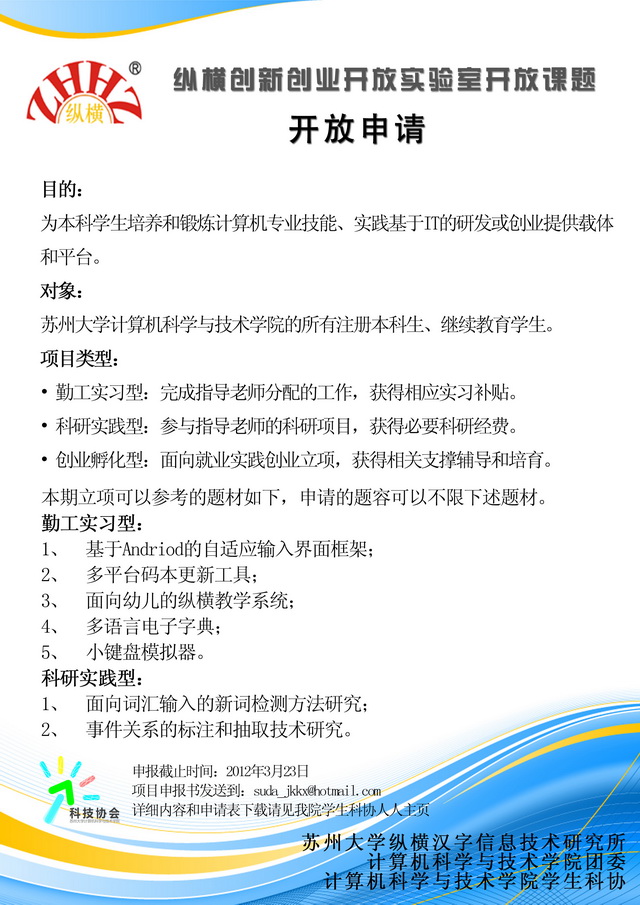 请在2012年3月23日前将项目申请书发送到:suda_jkkx@hotmail.com .