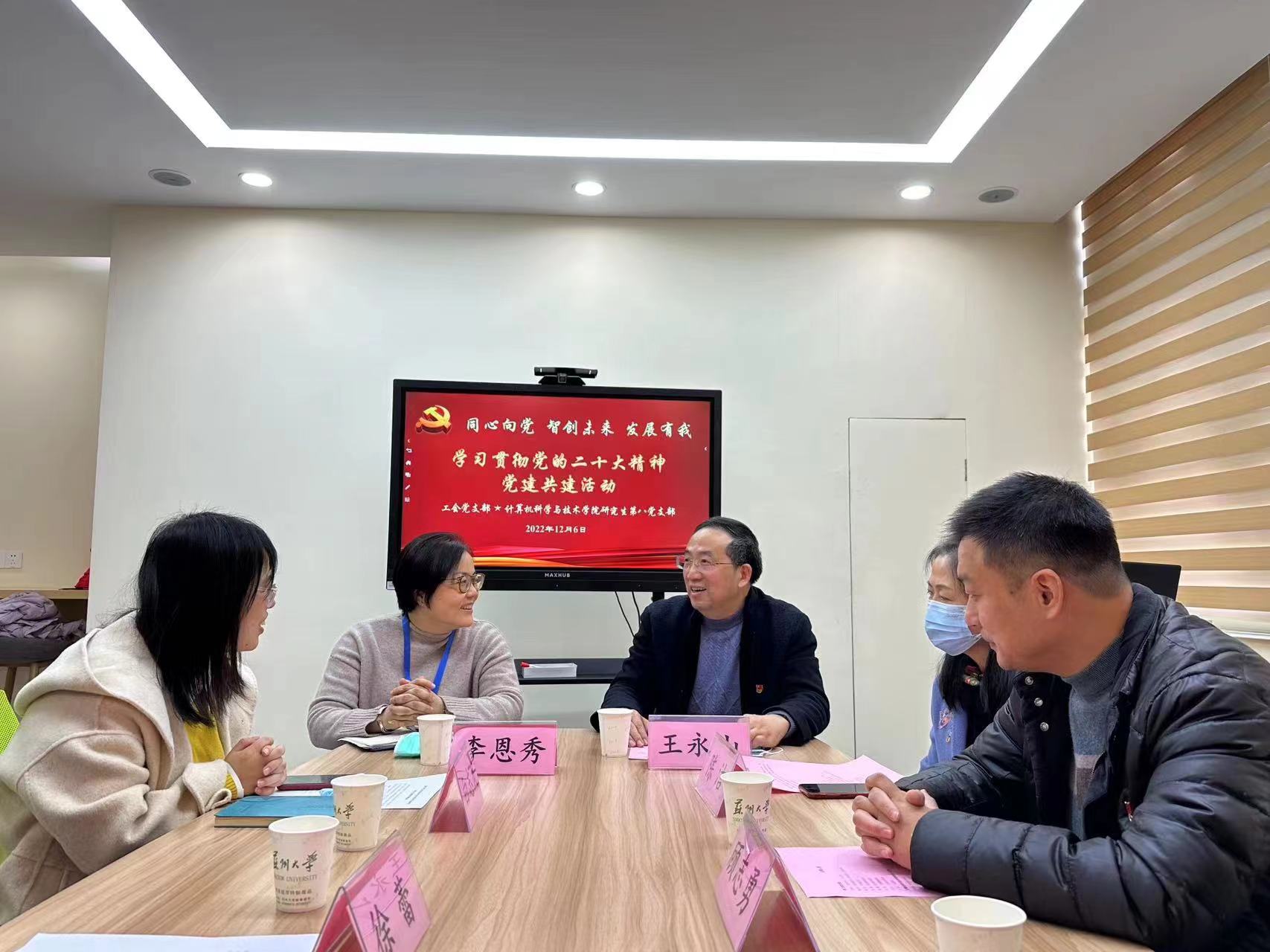 为深入学习宣传贯彻党的二十大精神,以落实立德树人根本任务,推进”三全育人“的教育方针,将师生思想统一到学习党的二十大精神上来,创新思想政治工作,努力培养担当民族复兴大任的时代新人。12月6日下午,Beat365唯一官方网站工会党支部和Beat365唯一官方网站研究生第八党支部在北校区工科楼702会议室开展联谊共建活动。Beat365唯一官方网站工会主席、党支部书记王永山,副主席陈洁,Beat365唯一官方网站党委副书记、副院长李恩秀,Beat365唯一官方网站研究生辅导员白志凤,及两个支部的党员代表出席会议。会议由Beat365唯一官方网站工会副主席、党支部副书记顾志勇主持。