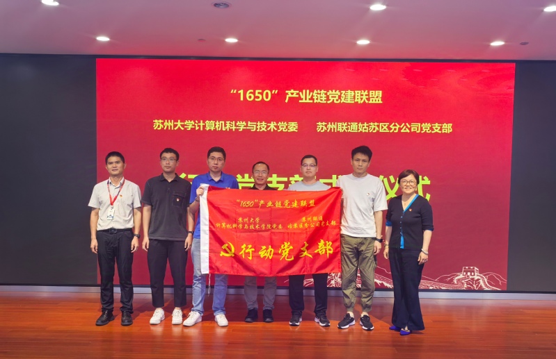 此次共建活动的一项成果是与苏州市联通姑苏分公司党支部联合成立了“行动党支部”,支部成员由Beat365软件工程系党支部高国举、瞿剑峰、陈宁3位专业教师党员和联通姑苏分公司党支部范嘉琦、钱强强等几位工程师党员组成,高国举老师当选为首任支部书记。Beat365唯一官方网站党委副书记、副院长李恩秀和姑苏分公司副总经理贾晓军为“行动党支部”全体成员授旗。李恩秀在发言中指出,校企党建“链动”共建,是新时代下加强党的建设、推动学校与产业深度融合、促进党建与业务深度融合的重要举措。此次行动党支部的成立,通过建立党员协同攻坚小组,围绕解决企业“卡脖子”技术难题,集中优势力量共同开展技术攻关,突破技术瓶颈制约。